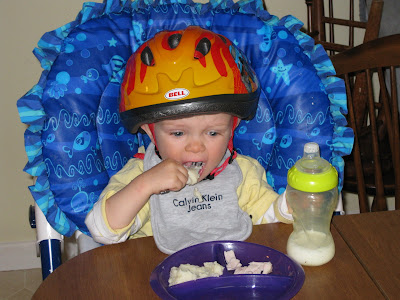 And YES he does opt some nights to eat with his helmet on. He thinks it is the coolest thing.